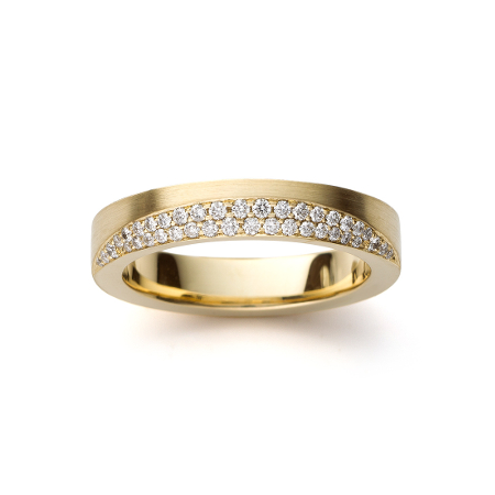 R002a - 14kt geel gouden ring bezet met zo'n 40 kleine diamantjes.