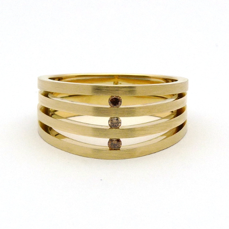 R035 - 14kt geel gouden ring bezet met briljant geslepen bruine diamanten