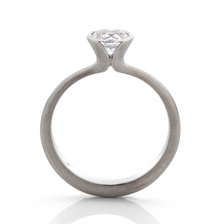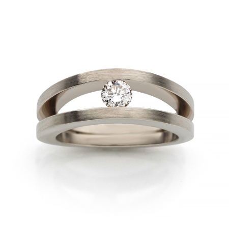 R055 - 14kt palladium wit gouden ring bezet met een briljant geslepen Hearts & Arrows diamant (fotografie: