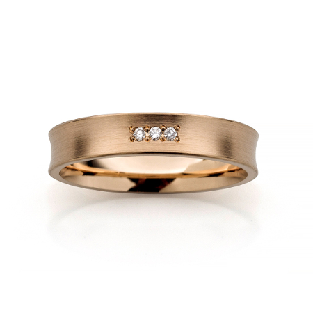 R045 - 14kt rosé gouden ring bezet met 3 kleine diamantjes